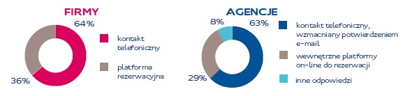 Przebadane firmy wskazują, że najbardziej popularnym sposobem rezerwacji hoteli jest bezpośredni kontakt telefoniczny (64 proc.), zaś platformę rezerwacyjną wskazało 36 proc. respondentów. Agencje preferują również kontakt telefoniczny, wzmacniany potwierdzeniem e-mailem (63 proc.). Jako główne czynniki takiego wyboru respondenci wskazywali kontakt z drugim człowiekiem (52 proc.), oszczędność czasu (51 proc.), wygodę i komfort (48 proc.).