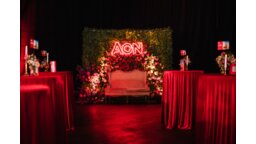 Centralnym elementem scenografii były wiszące nad przestrzenią sześcienne konstrukcje, na których każdej ze ścian zaprezentowano stylizowane widokówki Krakowa. Całość utrzymana była w odcieniach czerwieni — charakterystycznym kolorze AON — co pozwoliło naturalnie wpleść branding klienta w motyw regionalny bez efektu dosłowności.